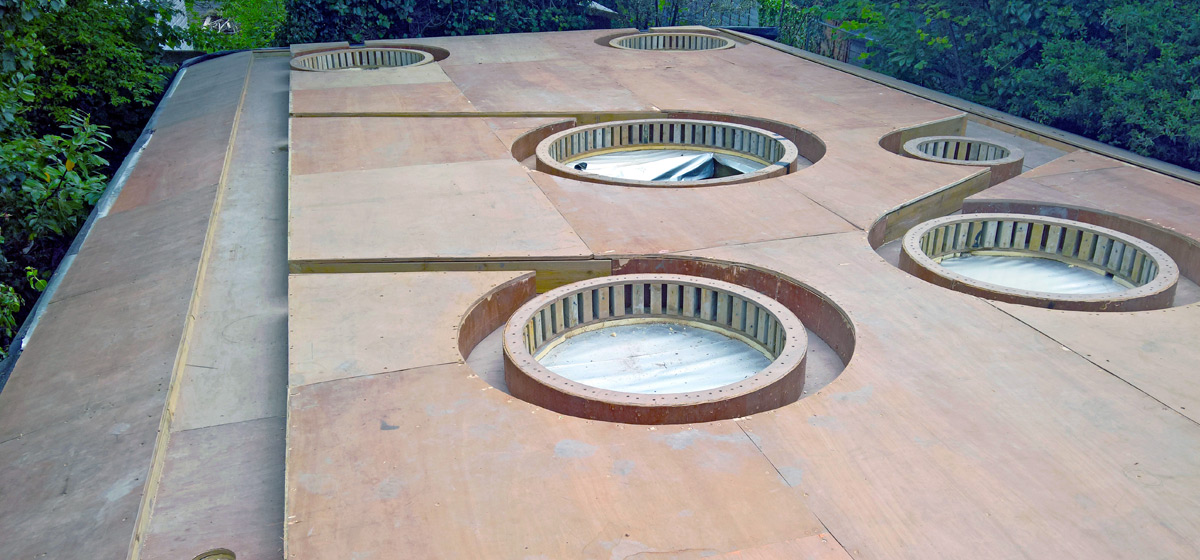 The roof is a canted dynamic form pointing to and beyond the principal dwelling orientated about a central oculus, influencing space and form within the design.