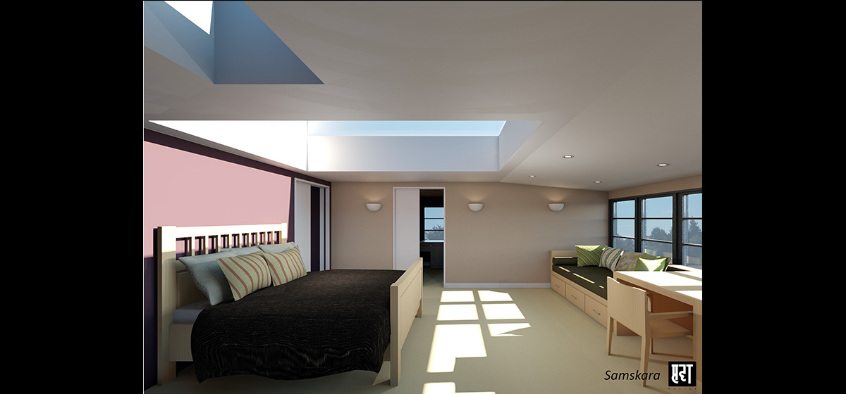 The new roof structure provides space for a new master bedroom with en-suite shower room and dressing room, with plenty of practical storage space.