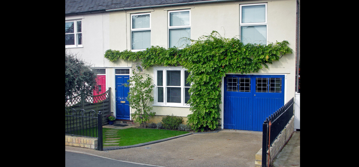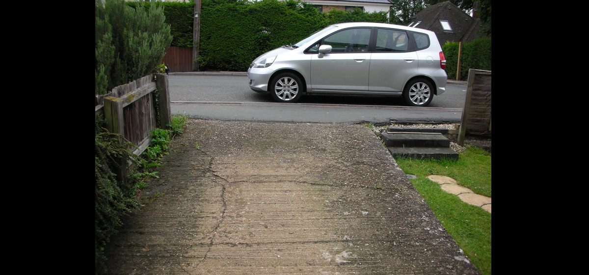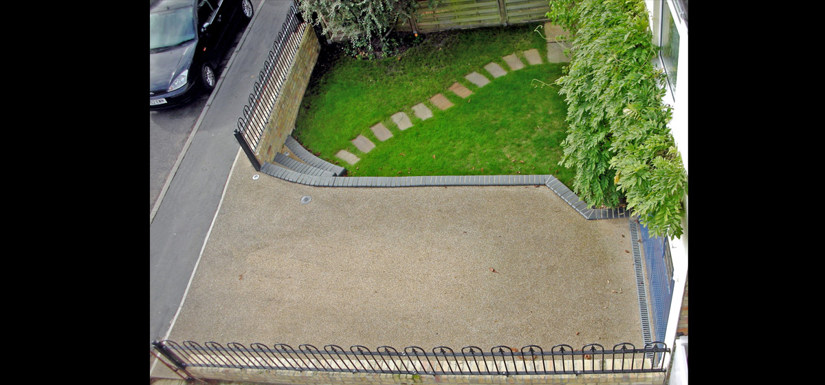 Samskara have designed and built a splendid drive for a town house, overcoming a number of structural problems. The Public footpath is no longer falling into the garden, the garage no longer floods and sunlight filters through to the front garden.