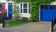 - Use dark blue bull-nosed engineering bricks to edge the drive and form steps