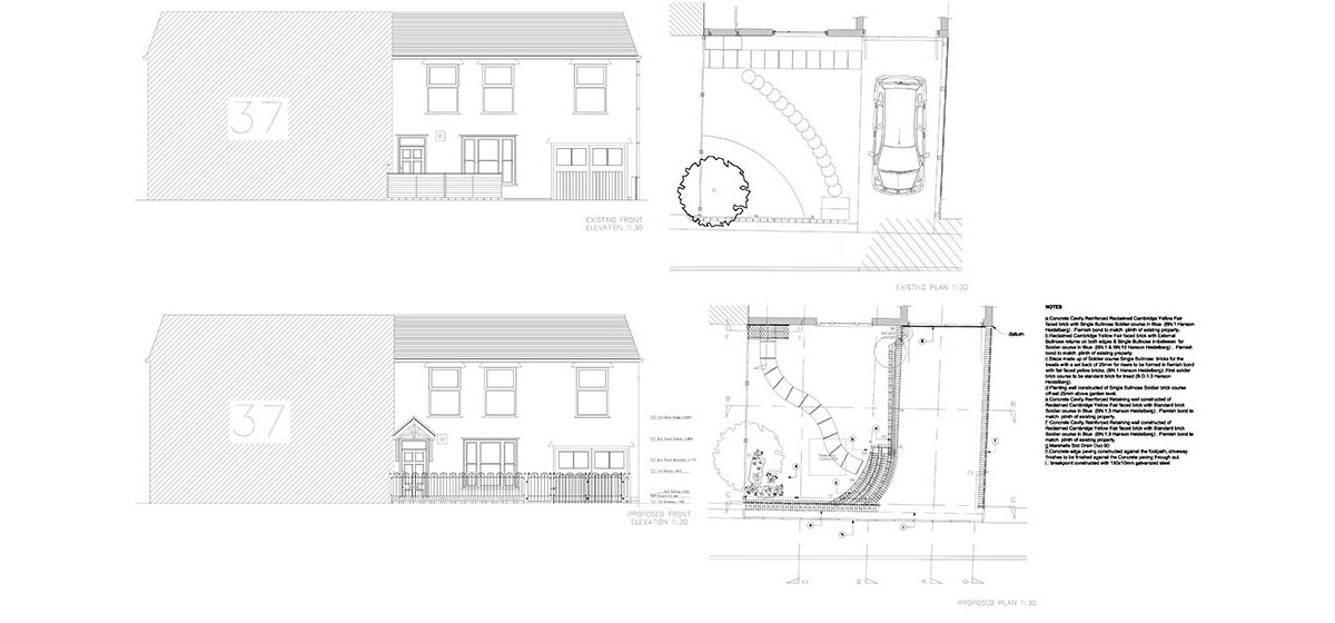 - Construct the retaining walls in gault bricks using a Flemish bond to match the Victorian house.